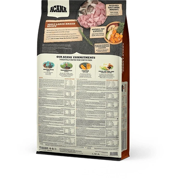 Fresh chicken (16 %), chicken meal (16 %), whole red lentils, whole green peas, turkey meal (6 %), whole chickpeas, fresh chicken giblets (liver, heart) (4 %), herring meal (4 %), eggs (4 %), raw flounder (4%), fish oil (3%), chicken fat (2.5%), whole green lentils, whole yellow peas, pea fibre, pea starch, raw turkey livers (0.5 %), salt, dried kelp, fresh whole pumpkin, fresh whole butternut squash, fresh whole carrots, fresh whole apples, fresh whole pears, fresh whole zucchini, dried chicory root, fresh kale, fresh spinach, fresh turnip greens, fresh beet greens, fresh whole cranberries, fresh whole blueberries, fresh whole saskatoon berries, turmeric, milk thistle, burdock root, lavender, marshmallow root, rosehips.
