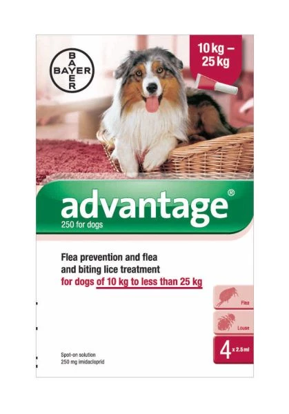 Bayer Advantage 250 Spot-On Solution Dogs 4 X 2.5ml Pipette 10-25kg