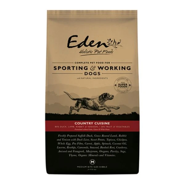 Freshly Prepared Duck 30%, Dried Duck 13.5%, Sweet Potato 13%, Freshly Prepared Lamb 10%, Dried Rabbit 8%, Freshly Prepared Venison 7%, Duck Fat 5%, Tapioca 3.5%, Chickpea 3.5%, Dried Lamb 3.5%, Whole Egg 2%, Duck Liver 2%, Pea Fibre 0.5%, Coconut Oil 0.06%, Carrot, Apple, Spinach, Lucerne, Rosehips, Burdock Root, Camomile, Seaweed, Cranberry, Aniseed & Fenugreek, Thyme, Marjoram, Oregano, Parsley, Sage, Minerals & Vitamins, Fructooligosaccharides 450mg/kg, Glucosamine 340mg/kg, Methylsulfonylmethane 340mg/kg, Chondroitin Sulphate 240mg/kg.