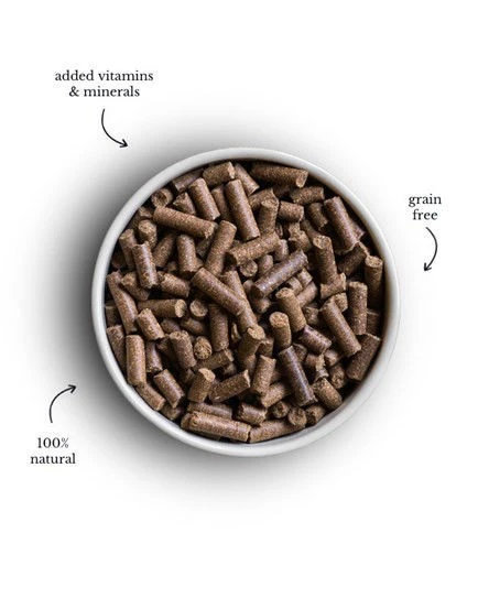 Chicken 32.5% (17.5% freshly prepared chicken, 15% dried ground chicken)†, Dried Sweet Potato (28%)†, Dried Peas*†, Chicken Fat*†, Gelatin*, Dried Beet Pulp*†, Dried Fruit (2.3%: apples, pears, blueberries, cranberries), Salmon Oil (1%)†, Brewer’s Yeast*, Dried Botanicals (0.6%: Fennel, Nettle, Dandelion), Mannan-oligosaccharide, Egg Powder*†, Chicory Extract*†, Dried Seaweed*, Camomile*, Flaxseed Oil*†, Glucosamine (300mg/kg), Chondroitin Sulphate (300mg/kg). Yucca*.