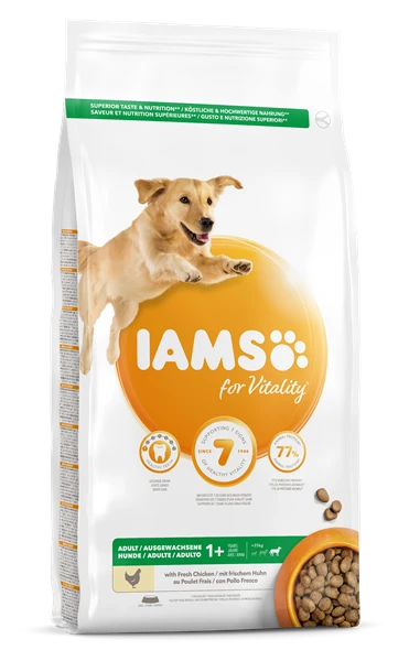 dried chicken & turkey 24% (including chicken 14%), maize, maize grits, barley, animal fat, fresh chicken (4.7%), sorghum, dried beet pulp (2.7%), chicken gravy, minerals (including sodium hexametaphosphate (0.38%)), fructooligosaccharides (0.21%), brewers’ dried yeast.