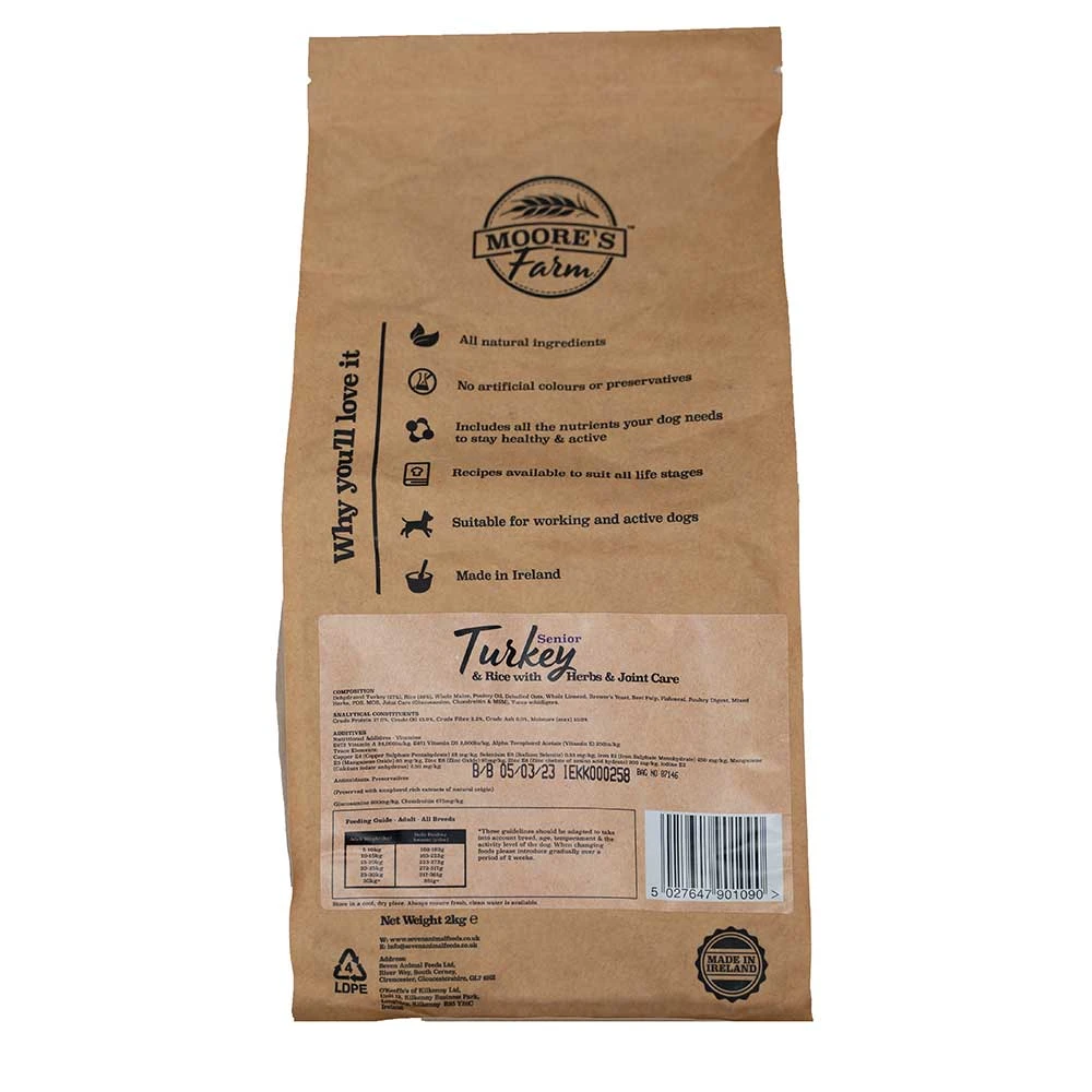 COMPOSITION: Dehydrated Turkey (27%), Rice (26%), Whole Maize, Poultry Oil, Dehulled Oats, Whole Linseed, Brewer’s Yeast, Beet Pulp, Fishmeal, Poultry Digest, Mixed Herbs, FOS, MOS, Joint Care(Glucosamine, Chondroitin & MSM), Yucca schidigera.