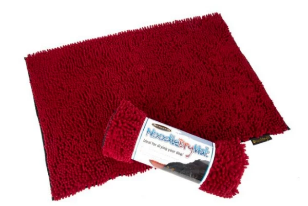 Scruffs¬Æ Noodle Dry Mat is extremely absorbent, easily soaking up excess moisture, enabling your dogs‚Äô coat to dry quickly after a wet and muddy walk. Micro-fibre chenille is used to produce the dry mats’ ‘noodles’. The micro-fibre material is made from millions of textured, ultrafine strands woven together to achieve a surface area that is much greater than the actual size of the dry mat. This vast surface area gives the dry mat its‚Äô super-absorbent properties, soaking up water just like a sponge, as well as improving airflow, this means drying time is greatly reduced. The same 25mm long chenille noodles also provide a comfortable surface for you dog to rest and has a non-skid surface applied to the underside of the mat making it ideal for use in cars, dog crates or around the home. The Scruffs¬Æ Noodle Dry Mat measures 90 x 60cm and is machine washable to keep it looking its best for longer.