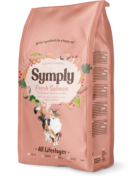 56.5% Salmon (Fresh Salmon 26%, Dried Salmon 26%, Salmon Stock 2.5%, Salmon Oil 2%), Sweet Potato (13%), Potato (13%), Whole Oats, Whole Egg, Sunflower Oil (2.5%), Monosodium Phosphate, Whole Linseed, Cranberry Extract, Seaweed, Glucosamine (340 mg/kg), MSM (340 mg/kg), Chondroitin (240 mg/kg), Yucca Extract.