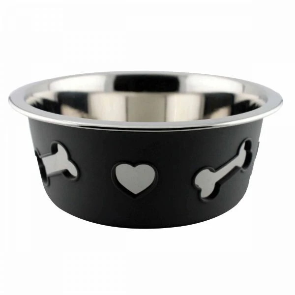 Weatherbeeta Stainless Steal Silicone Bone Dog Bowl Dark Grey 21cm